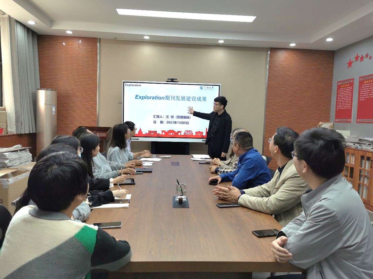 河南大学-麦考瑞大学生物医学联合创新中心汪欣老师做《Exploration期刊发展建设成果》主题报告。经过汪老师的系统介绍,大家了解了该期刊的办刊宗旨、收稿主题、审稿周期、发展历程、期刊的国际影响力和未来的发展等内容,并表示一定会尽心竭力,共同为办好河南大学的本土期刊出谋划策,期待期刊的发展更上一层楼。