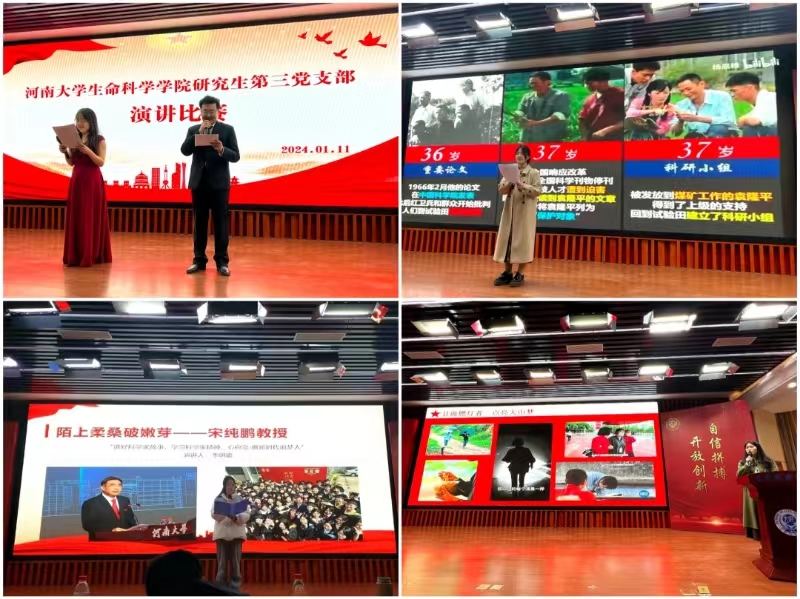 为学习贯彻习近平总书记关于科学家精神的重要论述,弘扬和传承科学家精神,为进一步增强党支部战斗堡垒作用,1月11日,生命科学学院研究生第三党支部在圆形报告厅举办“讲好科学家故事,做新时代追梦人”主题演讲比赛,共有10名学生参赛,学院教师代表和支部全体成员现场观摩。
