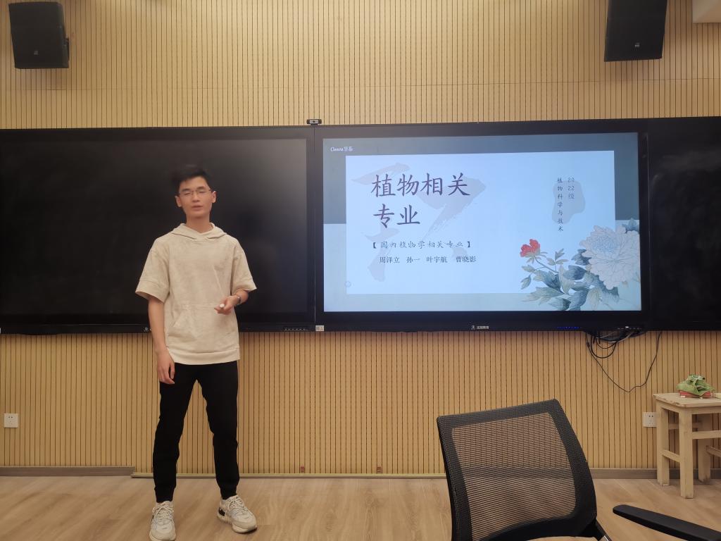 2021级本科生以小组为单位,以“我所了解的植物科学与技术专业”为主题,围绕国内外高校该专业开设情况、相关行业未来发展趋势和农学门类公务员岗位对植科专业的要求等三个方面以PPT的形式进行了阐述展示,这是根据前一阶段植科系倡议的“自主调研植物科学技术专业”进行的总结汇报。各汇报小组准备充分,体现出对考研、就业以及行业发展等方面进行了充分调研;会议气氛轻松活跃,与会人员热烈交流。