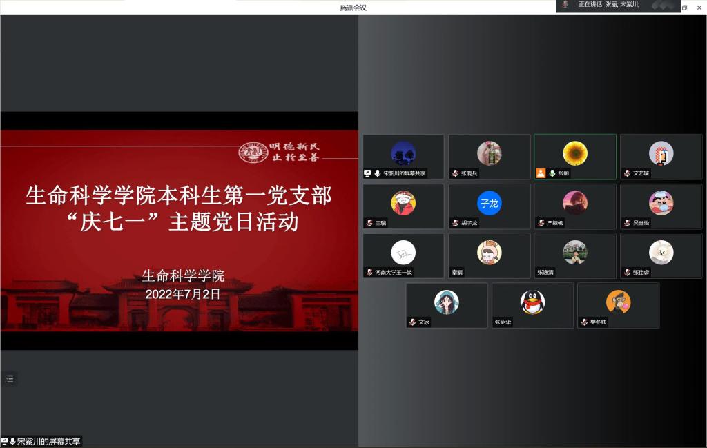 为了庆祝中国共产党成立101周年,让党旗飘扬在家乡,党员奉献在家乡。6月25日-7月1日,生命科学学院本科生第一党支部开展了“庆七一”主题党日活动,学院本科生第一党支部支部书记张丽主持线上总结会议。