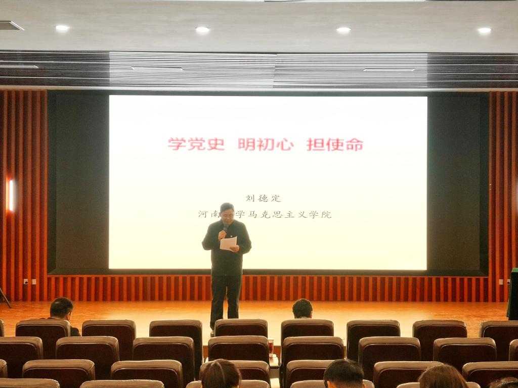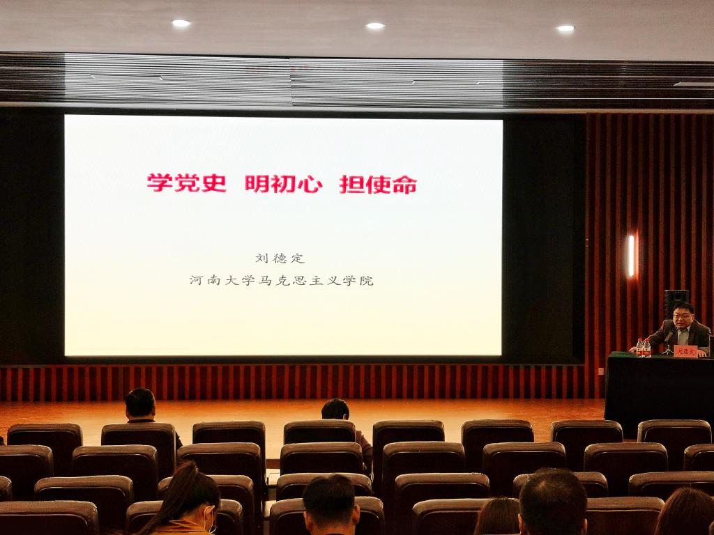 按照党史学习教育工作部署,4月1日下午,我校马克思主义学院刘德定教授来到生命科学学院圆楼报告厅,为学院近400名党员师生作《学党史,明初心,担使命》专题报告。报告会由学院党委书记赵东保主持,学院领导班子和全体党员参加学习。