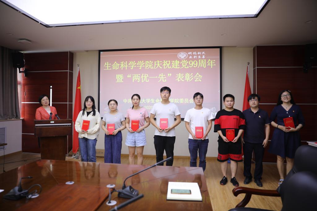 在雄壮的《国际歌》声中,生命科学学院庆祝建党99周年暨“两优一先”表彰大会拉上帷幕。