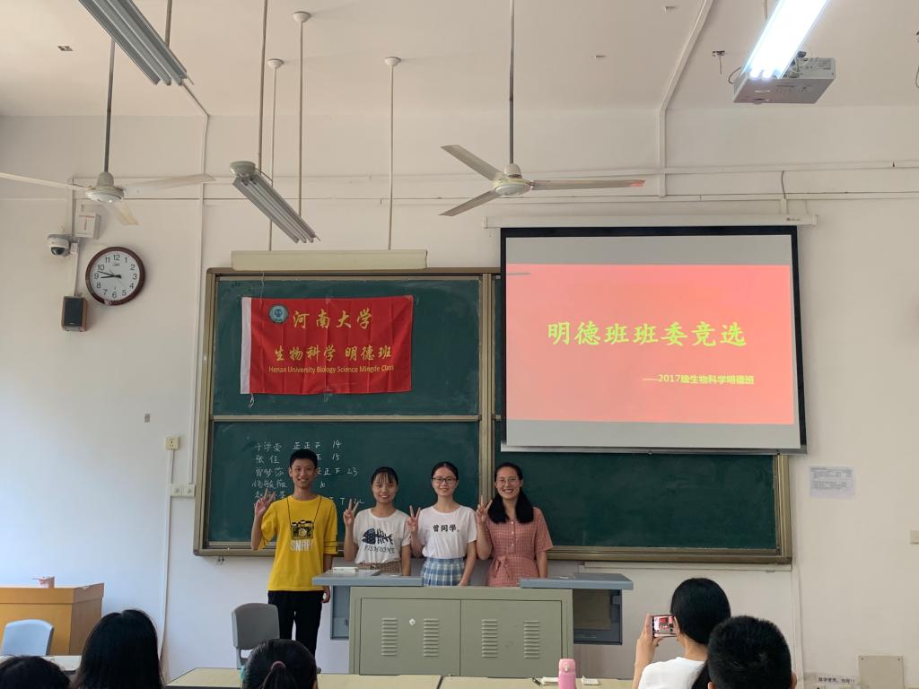 在同学们积极踊跃地参与下,2017级明德班第二届班委成员诞生,赵科举和于学荣连任班长与团支书,张佳和曾梦莎同学分别担任生活委员和组宣委员,最终形成了以上一届班委为主心骨,并注入新兴力量的新一届班委组织。