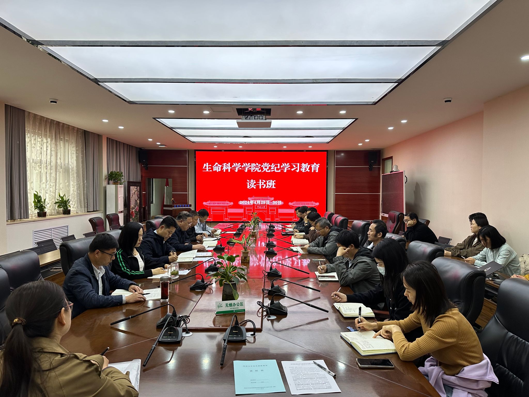 为深入学习习近平总书记关于党纪学习教育的重要讲话和重要指示精神,逐条逐句学习《中国共产党纪律处分条例》,推动党纪学习教育走深走实,4月29日—30日,生命科学学院组织召开党纪学习教育读书班。学院党委委员,班子成员,党支部书记以及各科室、系、中心负责人参加学习。读书班由学院党委副书记、执行院长王刚主持。