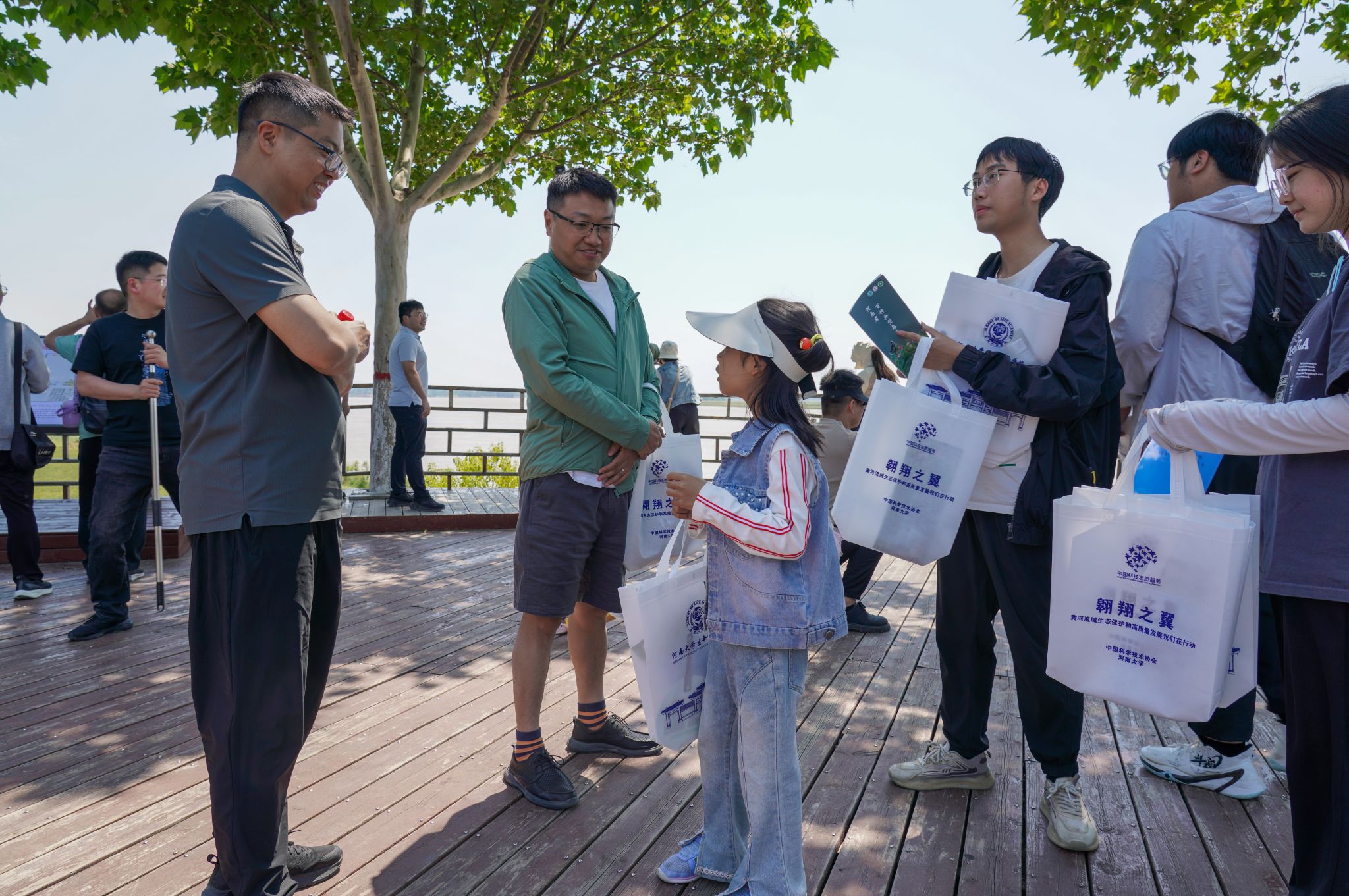 师生在东坝头实地考察黄河流域生态保护成果。历史上,兰考因黄河频繁决口饱受“三害”之苦,如今通过科学治理,昔日的风沙盐碱地已变身“聚宝盆”。师生在此开展了丰富多彩的生态实践活动,包括系统的鸟类观测记录和本土植物多样性调查,详细观察和记录黄河沿岸植被群落的特征,考察鸟类的种群数量和栖息特征。为增强公众环保意识,团队给周边社区居民和游客发放了精心编印的自制鸟类观察手册,通过现场讲解、互动问答等方式普及黄河流域生态保护的重要性,分享生态治理的实践经验。