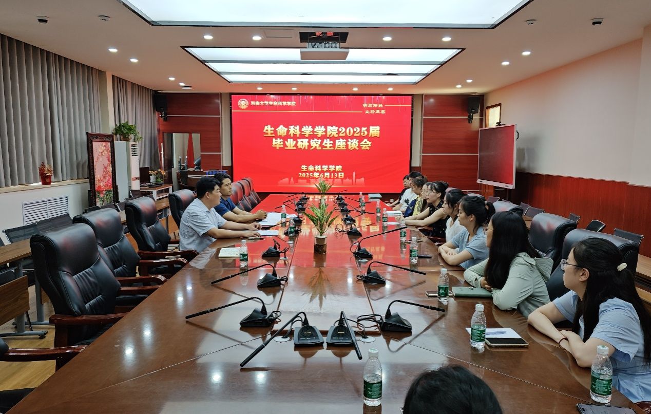 为筑牢人才培养根基,精准对接学生需求,6月13日下午,生命科学学院在B201会议室召开2025届毕业研究生座谈会。学院党委书记梁建忠、党委副书记宋永鹏、学院团委负责人宋晓峰与毕业生代表共聚一堂,围绕就业形势、职业规划及学院发展等议题展开深入交流。会议由宋永鹏主持。