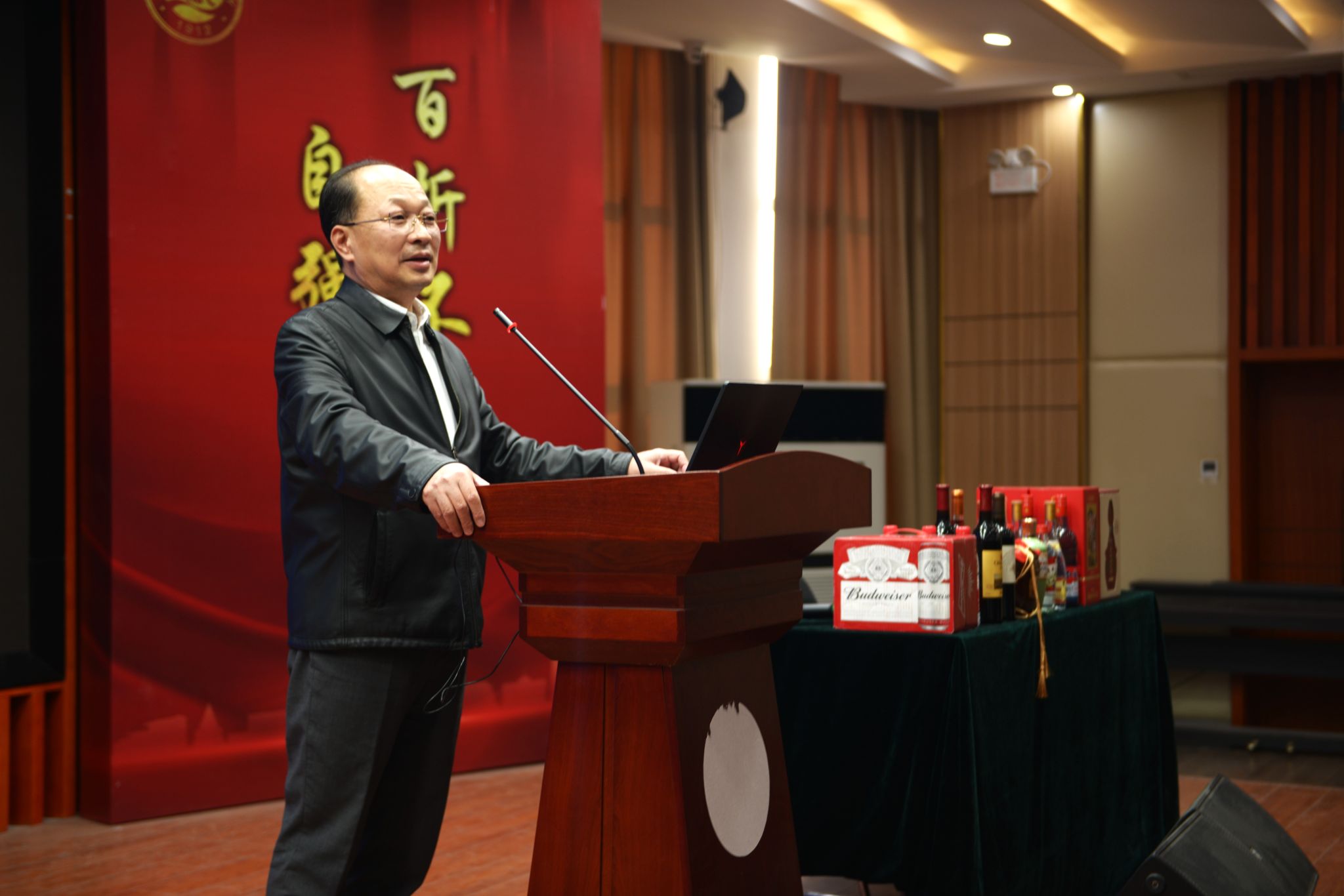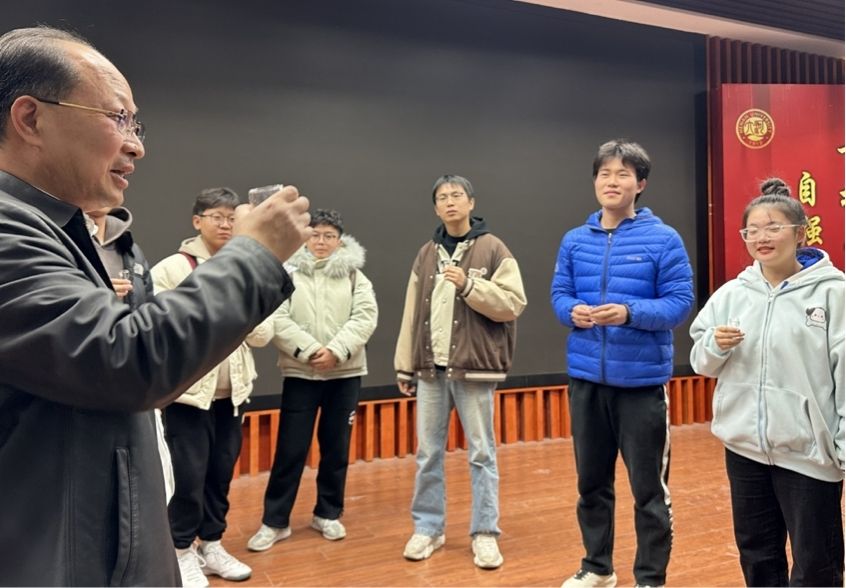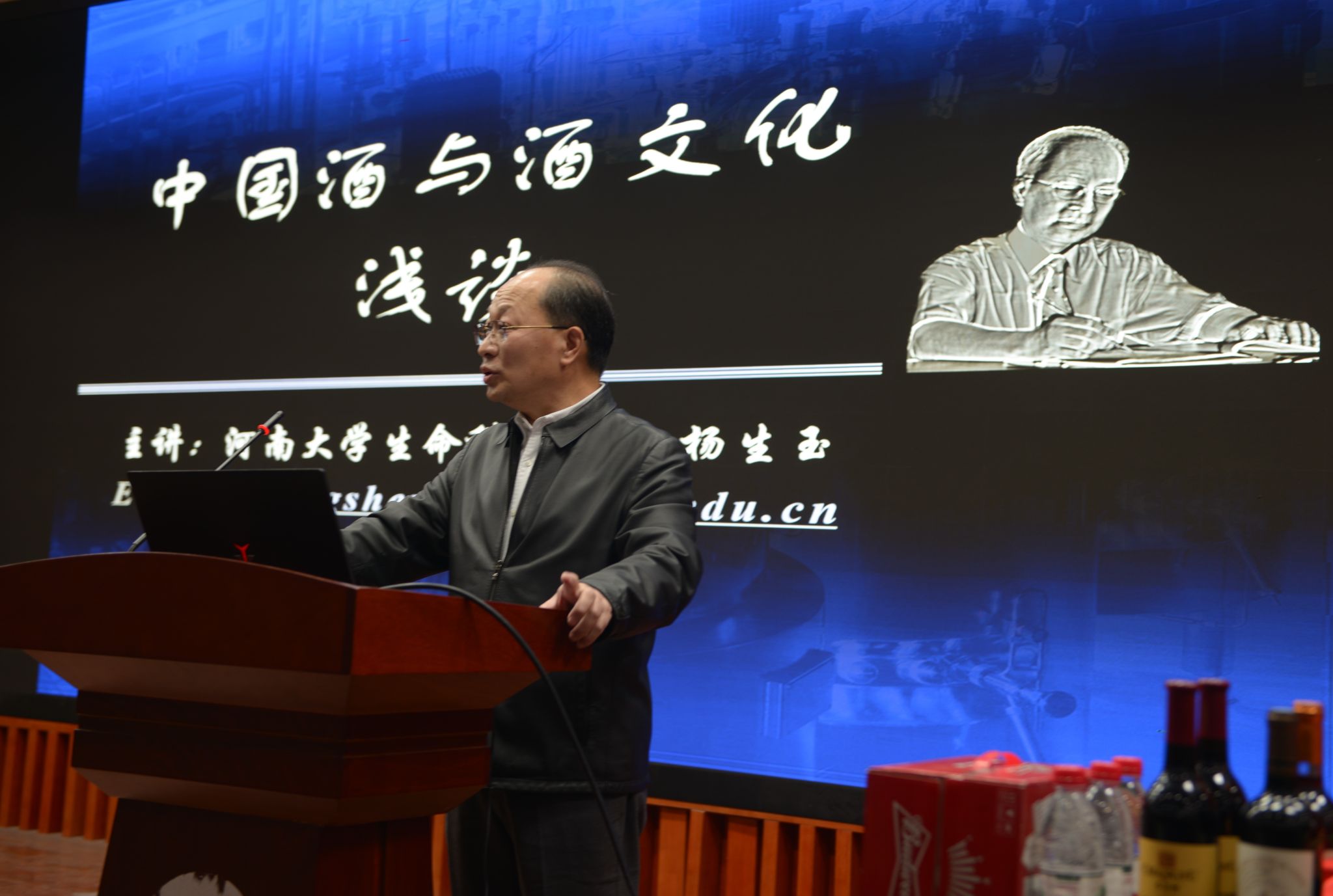 杨生玉以《中国酒与酒文化浅谈》为题,从中国酒文化、酿酒技术和名优酒品鉴三个方面带领学生开展中国酒体验式学习。他详细介绍了国人饮酒文化的形成过程,酒品发展的世系关系以及传统节日和民族特有的饮酒习俗;他还向同学们科普了传统的酒道、酒礼和酒令;他指出中国酒文化源远流长,酒与国人生活密不可分,酒的文化属性是其最主要属性。在酿酒技术方面,杨生玉为同学们讲到中国酒可分为酿造酒、蒸馏酒以及配制酒三类;中国白酒有四种基本香型,即:清香型、浓香型、酱香型和米香型,正是因为白酒具有更为复杂而精湛的酿造工艺从而使其不仅跻身为世界六大蒸馏酒之一,而且显得独树一帜。在名优酒品鉴环节中,他首先为同学们讲授了酒的质量评价指标,即色泽、香气、口味三个感官指标,以及酒精、甲醇、总醛等物质含量的理化指标;最后,杨生玉邀请同学们上台品酒,并做现场讲解与点评。品鉴环节师生共把盏、生动而有趣,气氛热烈活泼。