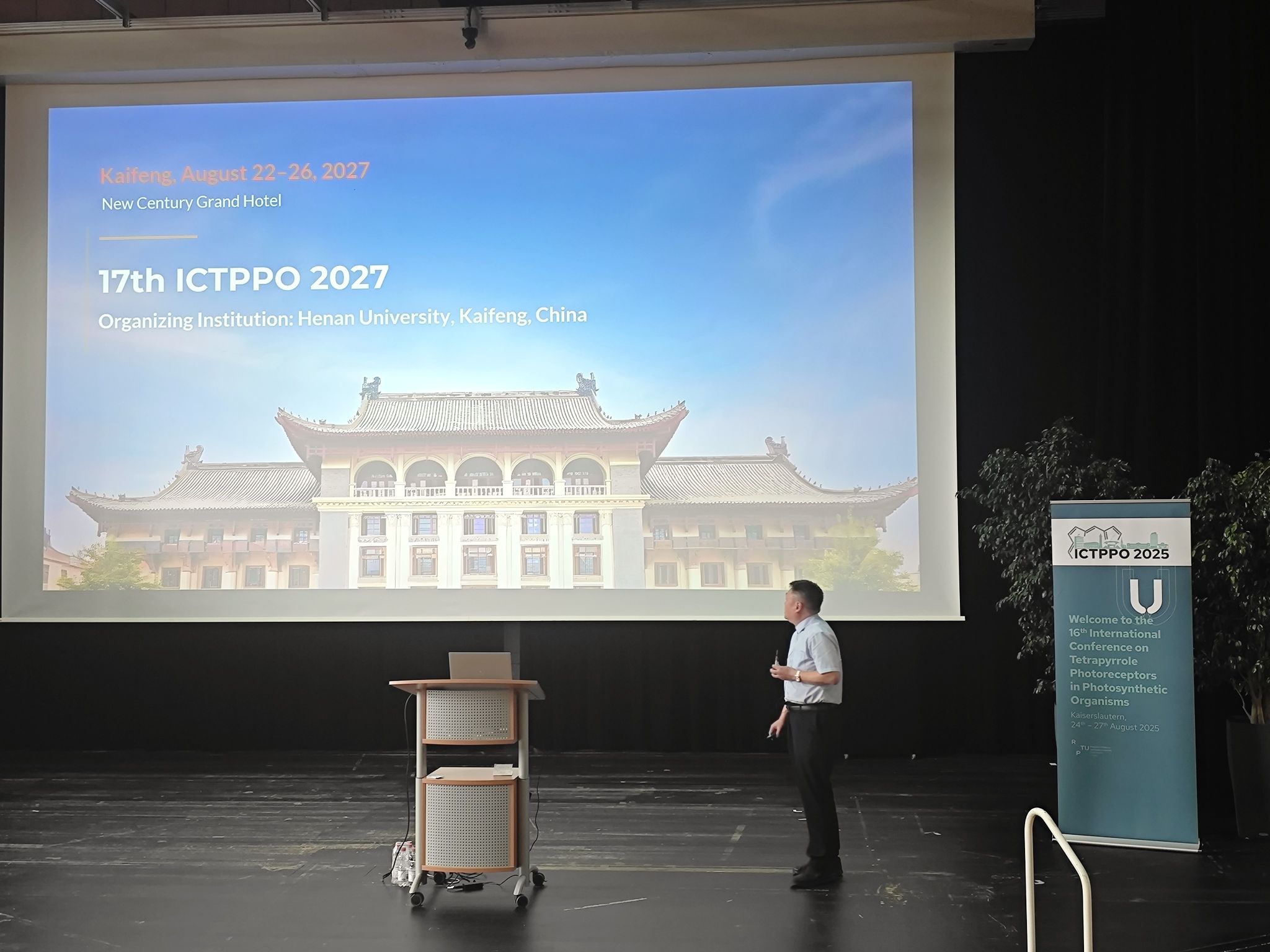 2025年8月23日至28日,河南大学学术副校长、生命科学学院院长张立新教授率领科研团队成员徐秀美、陈立超、孙扬一行4人组成的学术出访团,赴德国凯泽斯劳滕参加第16届光合生物四吡咯光受体国际会议(ICTPPO)。出访团在会议期间积极开展学术交流,并成功申办下一届国际会议,为学校在该领域的国际合作与交流奠定了坚实基础。