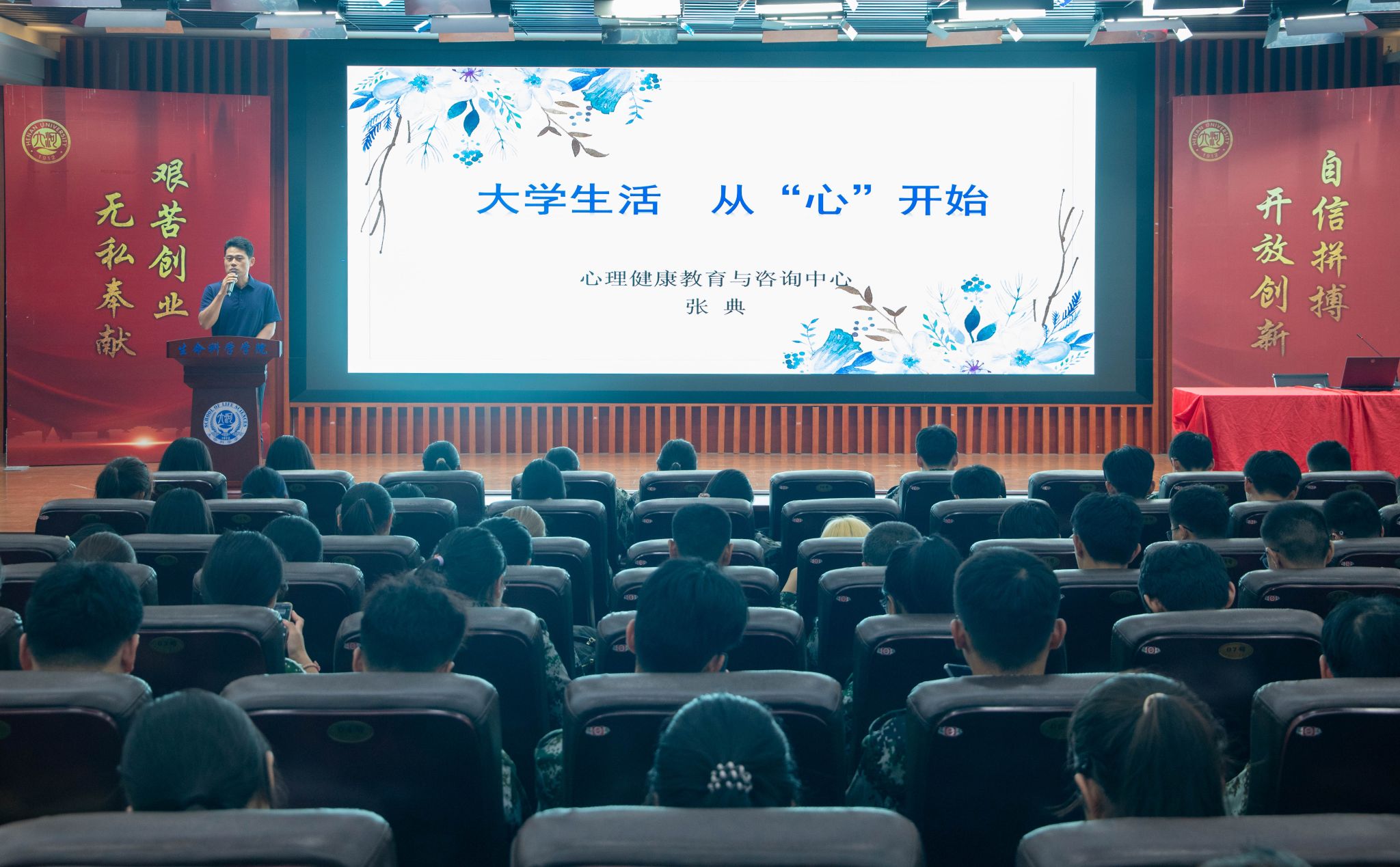 为深化大学生对心理健康的全方位认知,强化其主动预防的心理意识,9月4日下午,生命科学学院在圆形报告厅举行心理健康知识专题讲座,邀请校心理健康教育与咨询中心副主任张典为学院2025级新同学作报告。讲座由学院党委副书记宋永鹏主持。