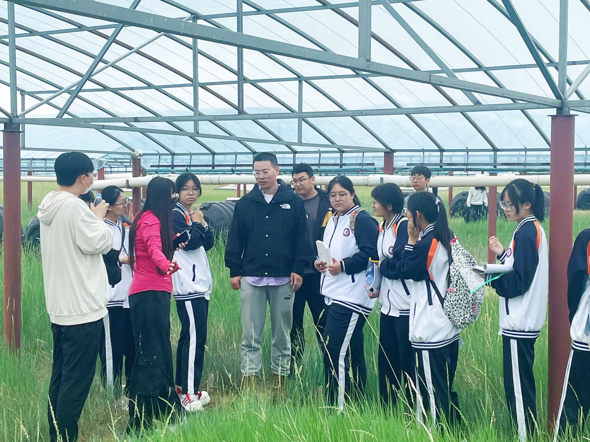 服务团积极履行社会责任,将科研实践延伸为生动的生态文明课堂。依托研究站资源及自身实践收获,团队为驻地及周边青少年精心组织了“草原深处求真知 科研基地砺青春”科普研学活动。队员们化身讲解员,结合亲手采集的标本、数据和图片,用通俗语言讲解草原生态、面临挑战及保护意义,并介绍长期实验平台如何助力科学研究。活动注重互动体验:指导青少年观测植物、辨识物种;设置微型样方参与简单调查;分享科研故事,激发探索保护兴趣。这场扎根一线的科普,将生态文明的种子播撒在孩子们心中,实现了科研实践与服务社会的融合。