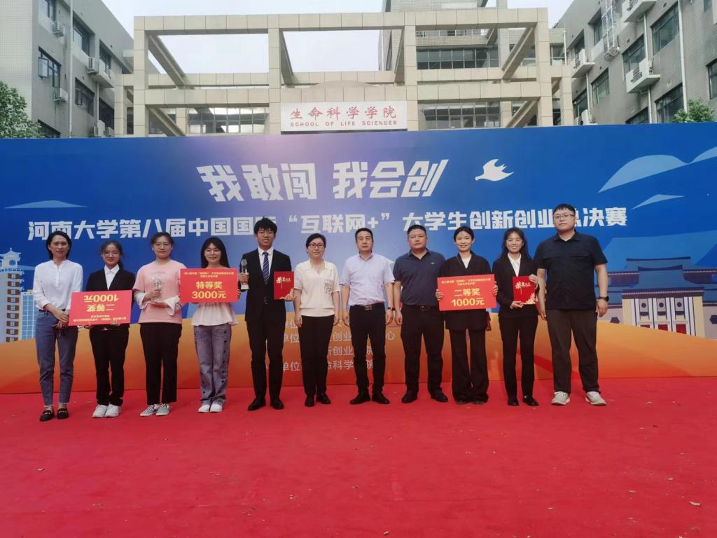 根据河南大学疫情防控要求,本届决赛采用线下路演和线上国赛评委老师点评的方式进行。各参赛团队从行业背景、市场分析、商业模式和财务分析等各个方面进行了作品展示。参赛选手们自信流利的回答和积极向上的精神面貌,充分展示了当代大学生“敢于有梦、勇于追梦、勤于圆梦”的青春活力。最终生命科学学院参赛的5组队伍不畏强手,斩获特等奖一项、二等奖一项、三等奖三项。