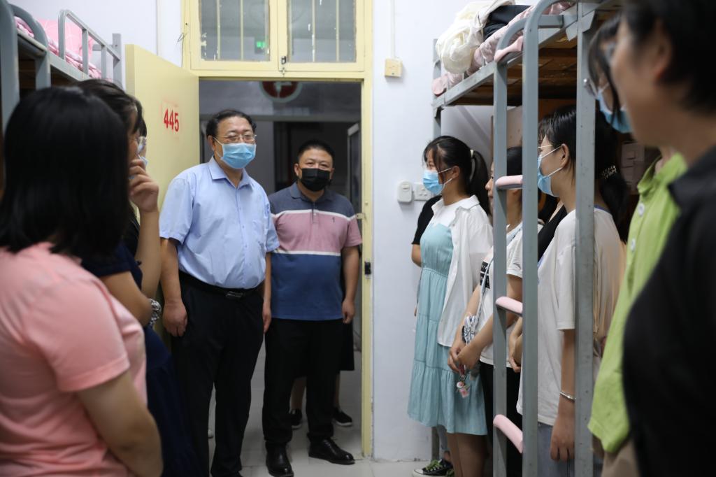 为进一步了解2020级本科新生的住宿情况,帮助新生尽快适应新的生活环境,9月12日晚7点,生命科学学院党委书记赵东保,常务副院长、党委副书记王刚,党委副书记张亚歌,副院长臧国轻,副院长赵海鹏及各年级辅导员老师前往东苑学生公寓看望刚刚入学的2020级新同学。