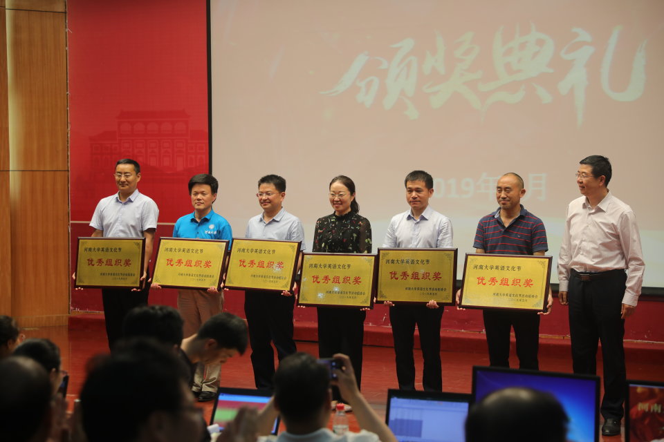 5月23日晚,由河南大学教务处、学生处、国际交流处、校团委、外语学院、大学外语教研部共同主办的英语演讲比赛决赛暨英语文化节颁奖典礼在计算机大楼二楼报告厅举行,校党委常委、副校长刘志军出席活动并为获得优秀组织奖的单位颁奖。我院荣获优秀组织奖和多项个人奖项。
