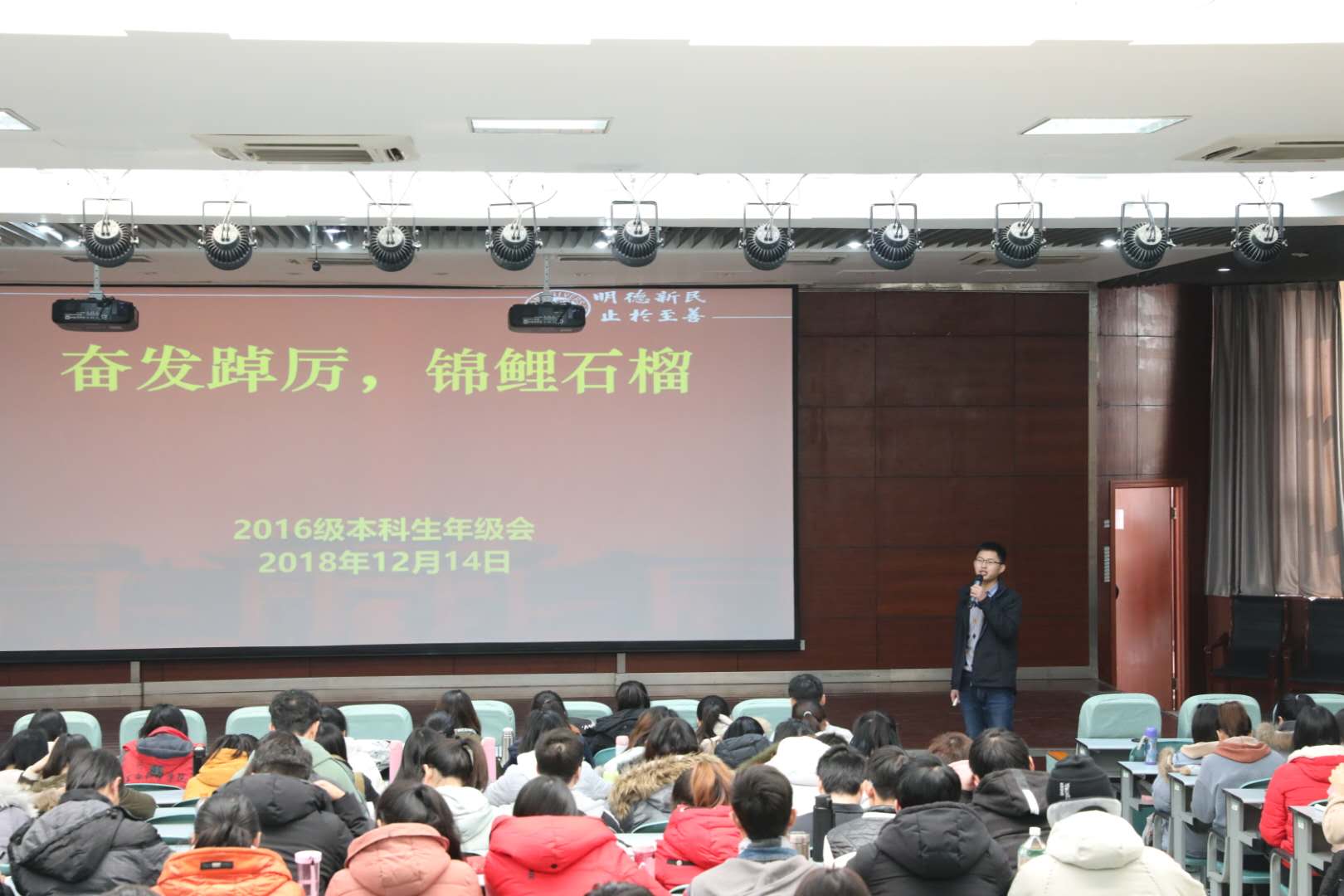 12月14日中午,生命科学学院2016级本科生年级会在学院圆形报告厅召开。2016级全体本科生参加本次会议。会议由辅导员付贤志老师主持。