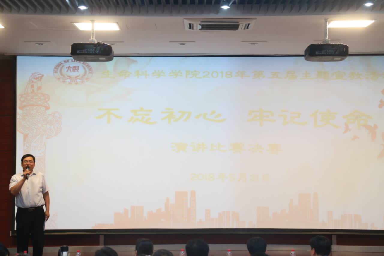 为进一步深入学习贯彻党的十九大精神,培育和践行社会主义核心价值观,落实一流学科建设方案。5月31日下午3:00,生命科学学院于圆形报告厅三楼举行第五届主题宣教活动“不忘初心、牢记使命”演讲比赛决赛。校党委宣传部副部长、新闻中心主任刘波,校团委书记翟新礼,校学生处副处长常凤香,生命科学学院党委书记赵东保,植物逆境生物学重点实验室常务副主任苗雨晨担任此次比赛的评委,生命科学学院、植物逆境生物学重点实验室全体教师、近四百名学生观看了此次比赛。