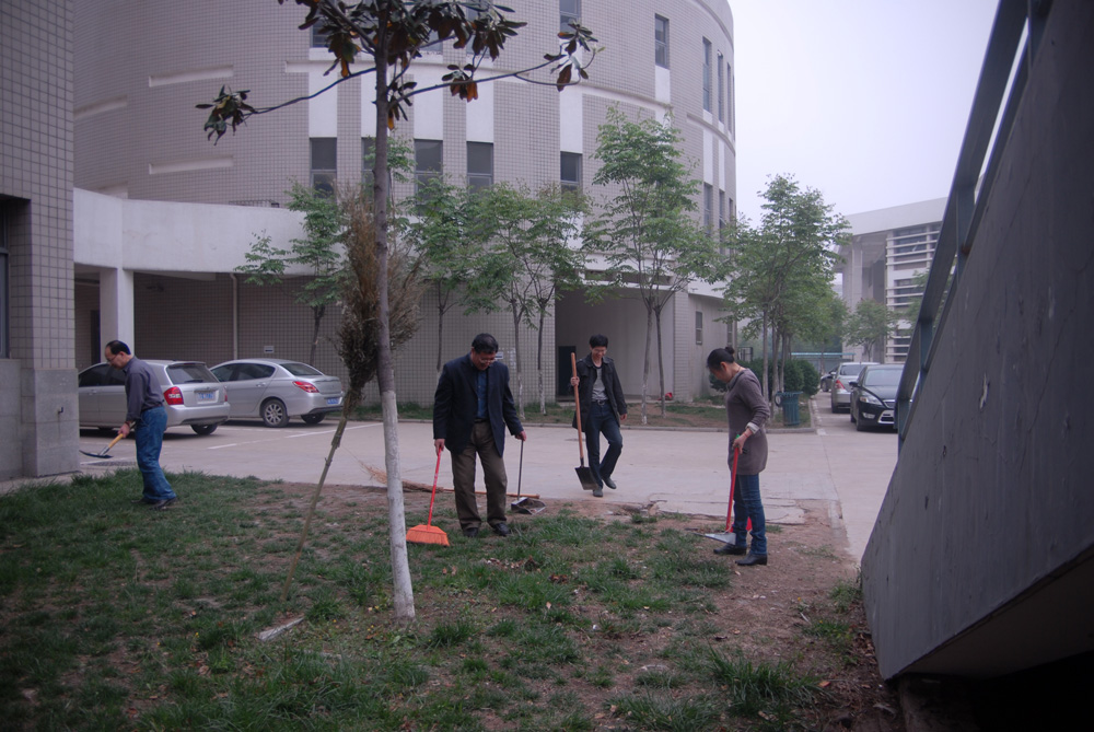本次活动分工明确,各单位、系组分别负责学院大楼内外及附近道路、草坪的清洁工作。生命科学学院教职工40余人参加了本次义务劳动,主要任务是清理学院卫生区内的难点。上午10时许,各系组的教职工在负责人的带领下到达相应的卫生区,积极踊跃地投入到清洁工作中,大家不怕脏,不怕累,扫地、拔草、清洁垃圾……尤其是那些特别难清理的小广告,老师们不怕麻烦,耐心细致地进行清除。中午,学院学生在辅导员的带领下,对学院周边环道展开了集中的打扫,并处理了大量的落叶和垃圾。一位老师谈到:“作为河南大学的一份子,我们有责任维护学校的环境卫生,为学校创建文明单位出一份力,为开封市的创卫工作增砖添瓦。”