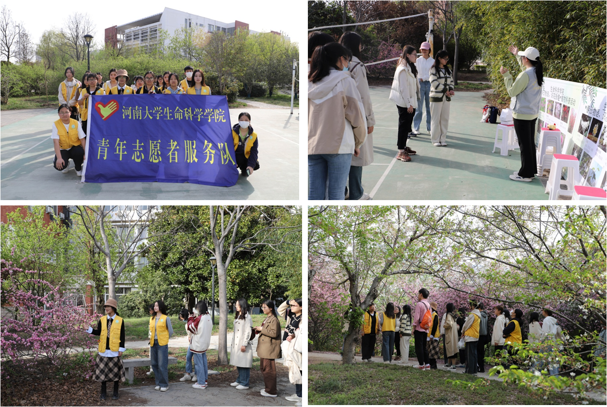 春日的校园,繁花绚烂,生机盎然。此次科普活动在河南大学金明校区以展板宣传和现场讲解相结合的方式进行,同学们沉浸式体验了一场与大自然亲密接触的奇妙之旅,共赏春日之美。志愿者使用精心制作的科普展板向同学们介绍花卉植物的生长习性、花期特征及生长环境等知识,耐心解答同学们的疑问。随后,学生志愿者带领同学们从七号综合楼前的花园出发,途经学校综合教学楼、图书馆、先闻湖,进行现场讲解与参观,饱含热情地用专业的生物知识、浪漫的诗句和通俗易懂的小故事向同学们详细描述花卉的特征、作用与盛开时的景象等,吸引了众多师生驻足欣赏和聆听,让学校师生们在轻松愉快的氛围中不仅学到了植物知识,还感受到了大自然的魅力。