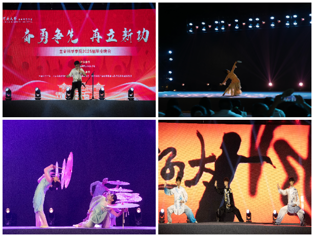 在悠扬的歌声与热烈的掌声中,生命科学学院2025届“奋勇争先,再立新功”毕业晚会圆满落下帷幕。这场承载着青春记忆与未来期许的晚会,不仅展现了生科学子的多才多艺,更彰显了师生团结奋进的精神风貌。