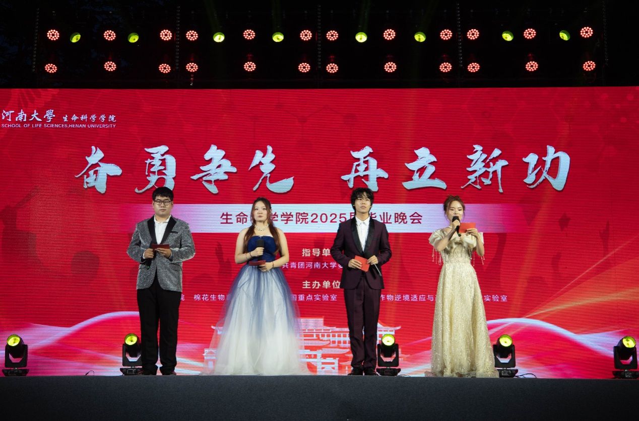在盛夏的暖风中,伴着离别季的情感渲染,6月7日晚,由共青团河南大学委员会指导的生命科学学院“奋勇争先 再立新功”2025届毕业晚会成功举办,河南大学原副校长王发曾教授,学术副校长、生命科学学院院长张立新教授,学院党委书记梁建忠,执行院长王刚及500余名师生共同度过这个难忘的夜晚。