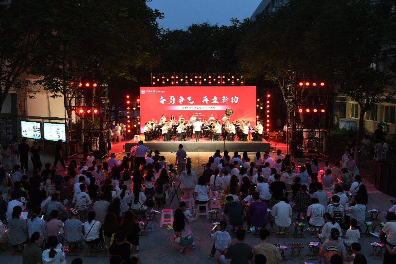晚会在河南大学老干部管乐团合奏的《在希望的田野上》中拉开帷幕,离退休老师身着统一服装,手持闪亮的乐器,在王发曾教授的指挥下,先后演绎《在希望的田野上》《长江之歌》两首承载着几代人记忆的曲子,他们用音乐诠释着“明德新民 止于至善”校训,展现了老一辈教育工作者昂扬向上的精神风貌,为整场晚会奠定了激情与感动并存的基调。