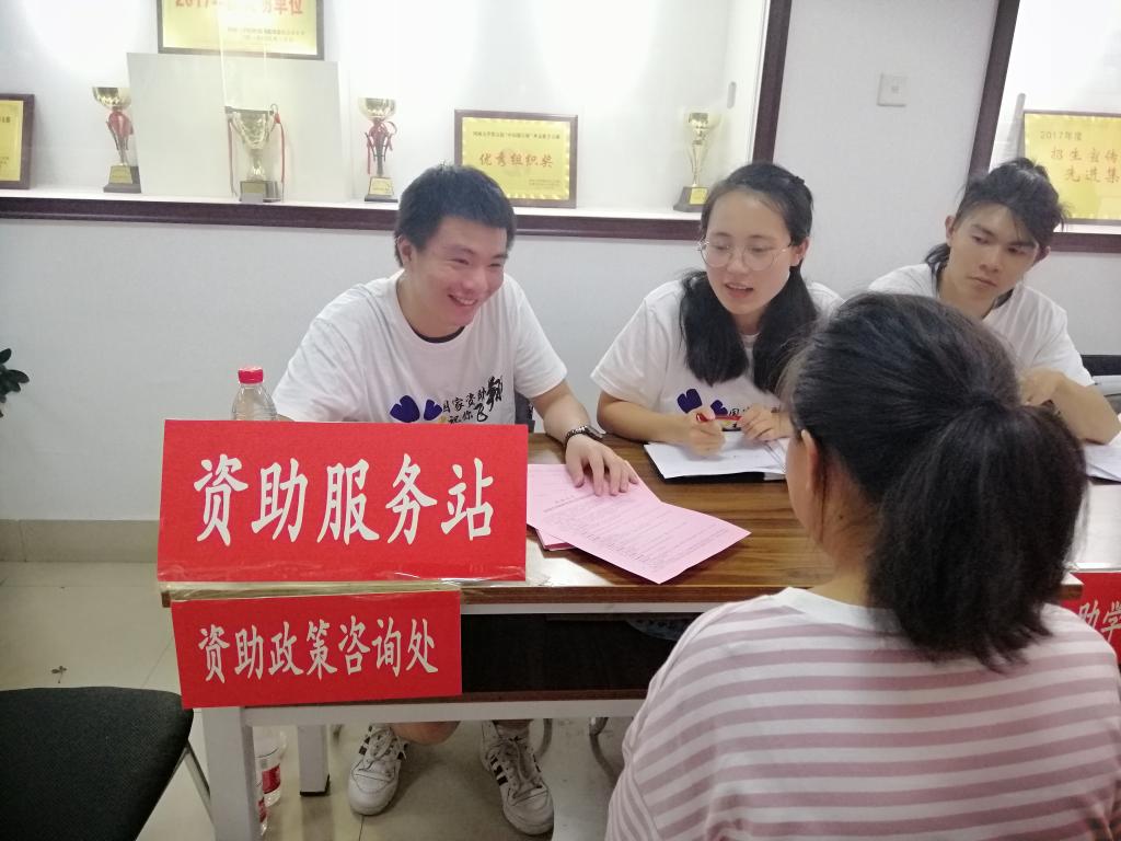 自8月30日上午始,学院一切招新工作准备就绪,学长学姐们充满期待的等待着新生的到来。在迎新过程中,报名完毕的新生就会被接引到资助平台,面对家庭贫困又对大学充满着无限憧憬的新生们,平台负责人耐心的向新生和家长介绍了助学金和贷款政策。每个人都希望新生能在大学感受到来自国家、学校以及学院的温暖,衷心的期盼着能抚平贫困给新生学业上带来的坎坷,给新生一个充分体会大学美好生活的机会。