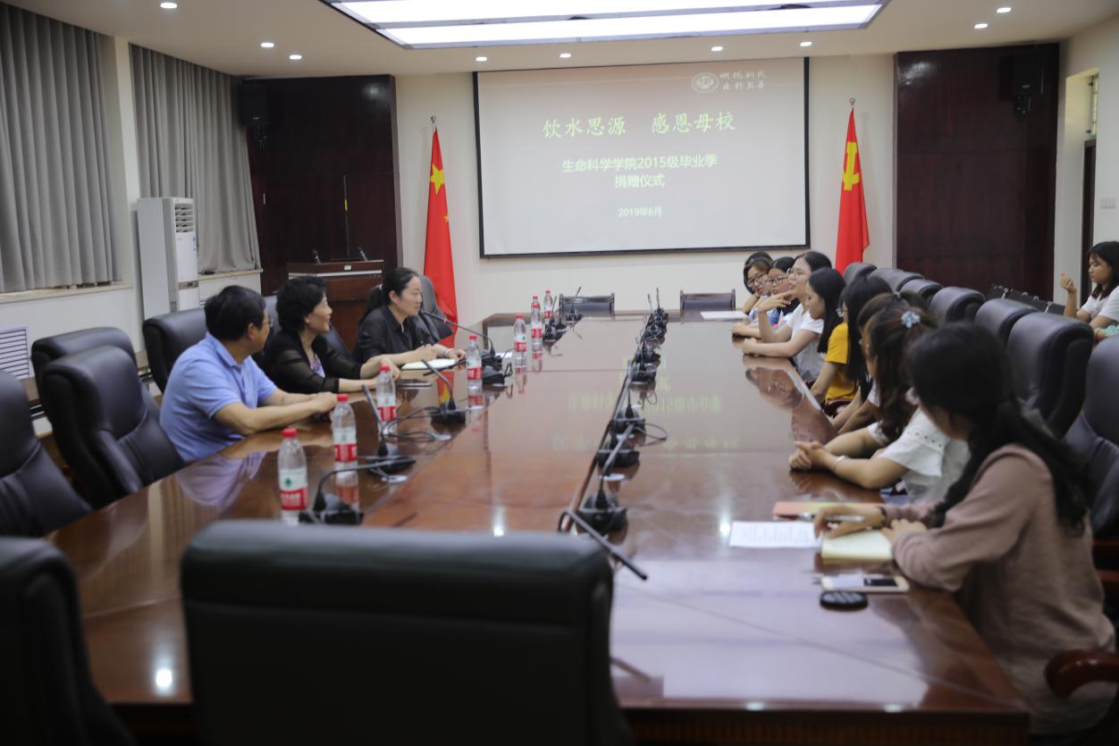 6月6日下午,生命科学学院在B201举行2019届本科毕业生“饮水思源·感恩母校”捐赠仪式。河南大学校友工作与教育发展基金会办公室主任、校友总会秘书长刘波出席活动并讲话,生命科学学院党委书记赵东保、院党委副书记张亚歌出席仪式,仪式由张亚歌主持。