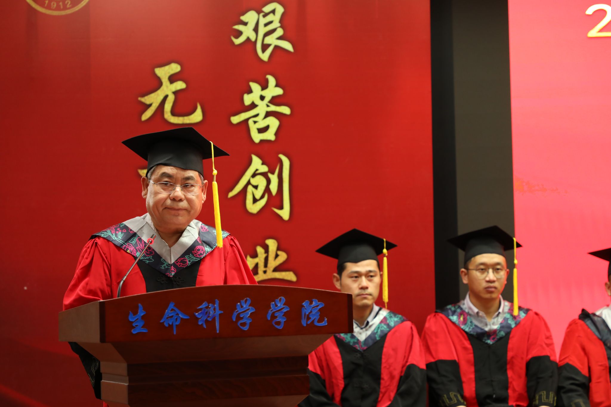 执行院长王刚向168名2024届本科毕业生表示最衷心的祝贺,向辛勤培育的老师以及全力支持的家长们致以最崇高的敬意。他勉励同学们:一是自信自强,奔赴远方,秉持“潮涌东方显英姿,扬帆起航现豪情”的自信,将美好青春与伟大时代结合起来,谱写时代芳华、勇立时代潮头;二是坚定信念,迎难而上,激发“潮平岸阔催人进,风正扬帆正当时”的拼劲,做顶天立地的科研人,为时代发展进步贡献青春、智慧和力量;三是紧跟时代,勇于担当,弘扬”青年兴则国家兴,青年强则国家强”的担当精神,成为胸怀大志、敢于追求的生科人。希望同学们永葆热爱,怀揣梦想,在属于自己的航道上笃定方向,乘风破浪,行而不辍。