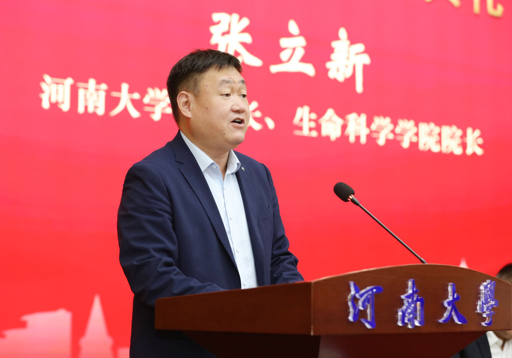 河南大学副校长、生命科学学院院长张立新教授致辞。他代表学院、重点实验室向2024级新同学表示热烈欢迎。他讲到,河南大学正处在国家“双一流”、河南“双航母”战略发展期,确立了创新发展的办学新目标、新思想、新精神,每一位河大人在机遇和挑战中追寻实现梦想的奋斗路径,传承创新,奋力拼搏。他强调,生命科学学院自1987年重建以来,经过一代代生科人的团结奋斗实现了跨越式发展,生物学科从“一个课题,两个老师,三间房子”的艰苦创业,到两次入选世界一流学科,形成了先进的学术思想和独特的学术体系,成为全国领域内的后起之秀。他希望同学们要心怀祖国、勇挑重担,牢记为中华民族伟大复兴而奋斗的使命,努力成为祖国栋梁;要珍惜时光、自律自省,怀抱梦想又脚踏实地,敢想敢为又善作善成;要持续发力、坚持创新,树立对一流创新成果的追求,以具体应对焦虑,以笃定应对变化,以经历应对迷茫,以创新应对未来。