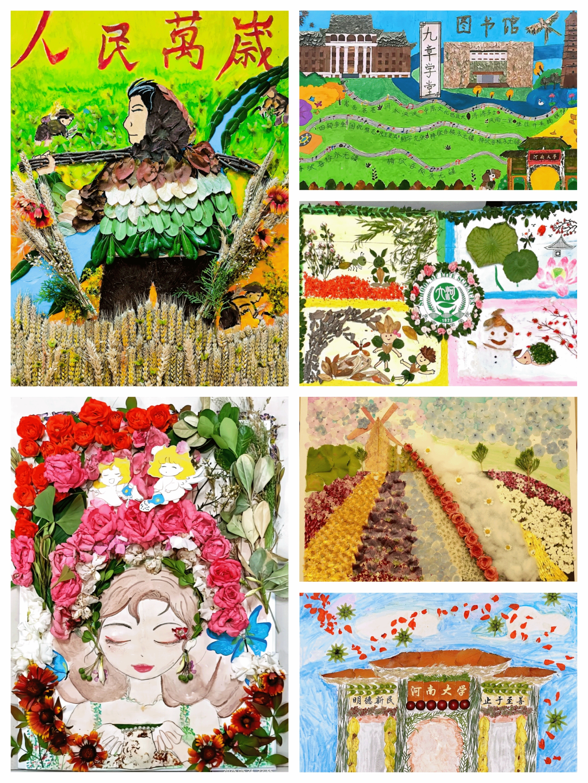 经过激烈角逐,作品《金穗向阳,人民礼赞》获得校级一等奖,作品《猗欤吾校永无疆》《四时绮绘·叶韵流芳》《卉间风语》获得校级二等奖,作品《圣卉的加冕》、《河大扉韵·榴瓣逐梦》获得校级三等奖。《嘉木蕴千象,楼台转年华》《叶绘盛世景》等作品获得院级奖项。