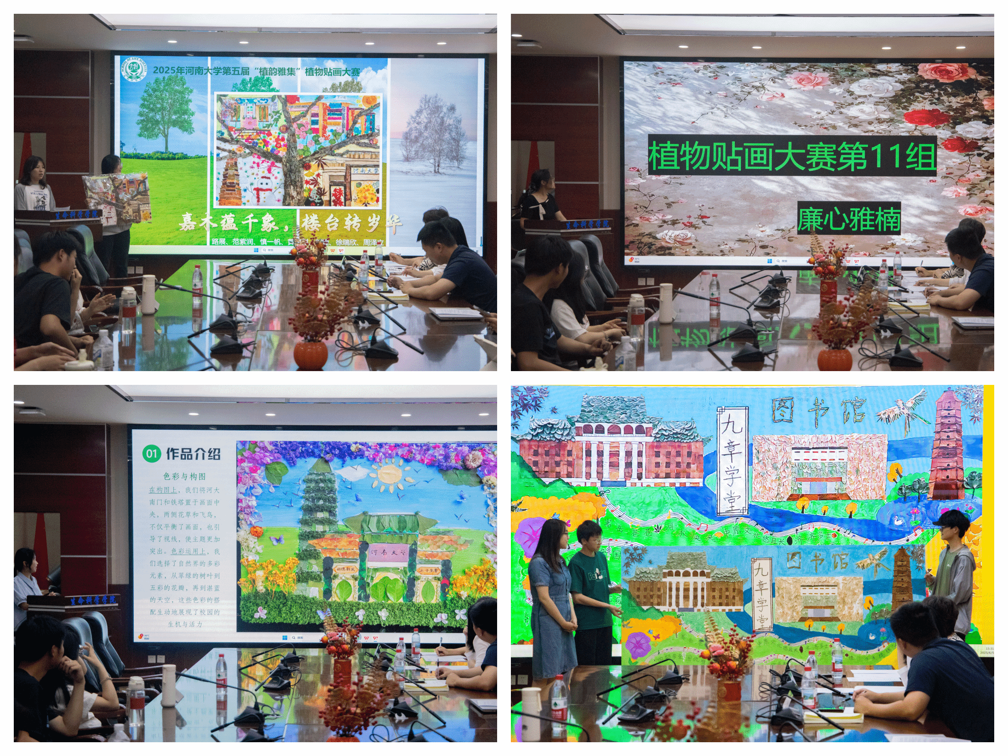 为增强学生对校园的情感认同,感悟大自然的美好,培养创新思维和实践能力,推动素质教育的全面发展,近日,由共青团河南大学委员会主办、生命科学学院承办的河南大学第五届“植韵雅集”校园植物贴画大赛顺利落下帷幕。本次比赛吸引了来自全校各个培养单位的300余名大学生提交65份参赛作品,活动先后经过线下展示、线下投票、线上投票以及决赛路演环节,最终确定获奖作品。