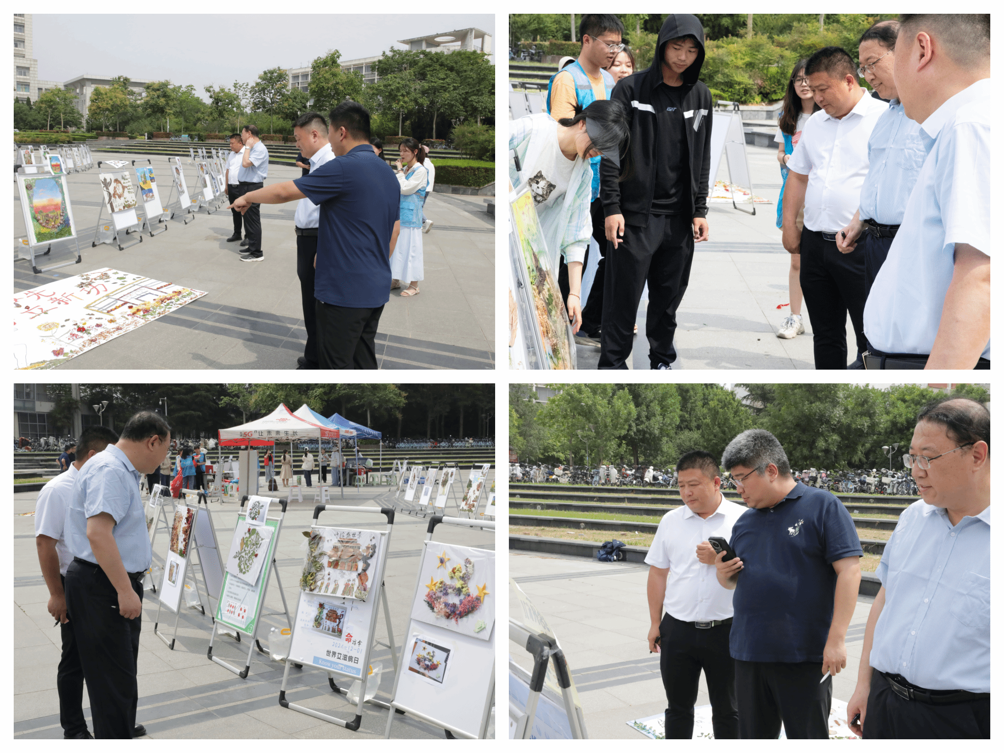 大赛采取线上线下相结合的方式进行展示与评选,5月30日,初赛作品在金明校区下沉广场公开展示,吸引了众多师生驻足观赏。河南大学学术副校长、生命科学学院院长张立新,校团委副书记郭际平,学院执行院长、党委副书记王刚,副院长赵海鹏、苏鹏等领导老师来到现场参观,与创作者交流互动,了解作品的创作灵感、制作过程以及所蕴含的寓意,并为参赛作品投票。张立新对同学们的创作热情和创新能力给予了高度评价,并指出本次大赛不仅是一场艺术创作的盛会,更是同学们亲近自然、感悟生命、提升综合素质的重要契机,感谢同学们为诠释河大精神注入新的创意。