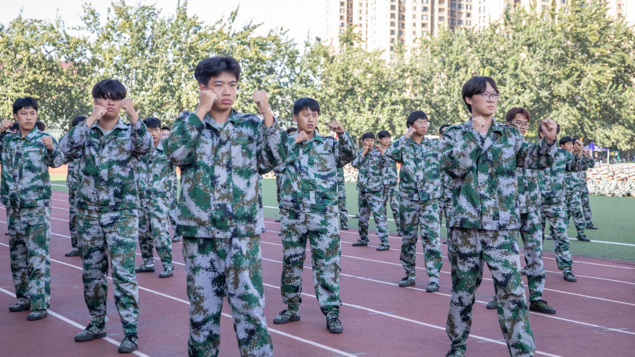 烈日当空,热血沸腾。同学们在教官铿锵有力的指令声中,展开了队列动作、战术基础、军体拳等多项军事训练。“齐步走!”“正步走!”“向左转!”——一声声口令如战鼓擂响,汗水划过年轻的脸庞,浸透身上的迷彩,每一滴都是成长的见证,每一步都是意志的锤炼。