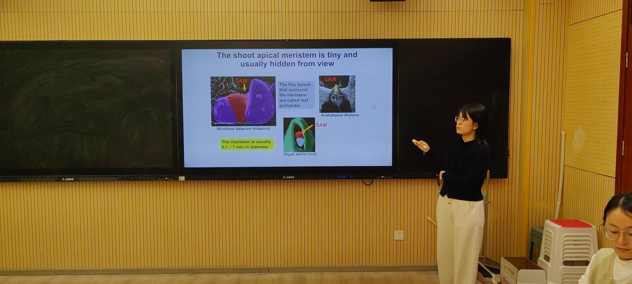 试讲环节中,两位青年教师陈贝贝、胡晓彤先后登台进行课堂教学展示。他们围绕《植物发育生物学》核心内容,分别就“植物的分生组织”和“植物花器官发育”两大专题展开讲解。试讲教师准备充分,教学内容逻辑严密,课件设计精美,在有限时间内充分展现了扎实的专业功底、富有感染力的教学风格和良好的教学潜质。