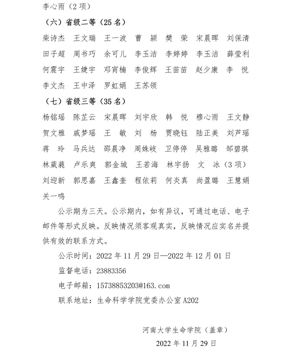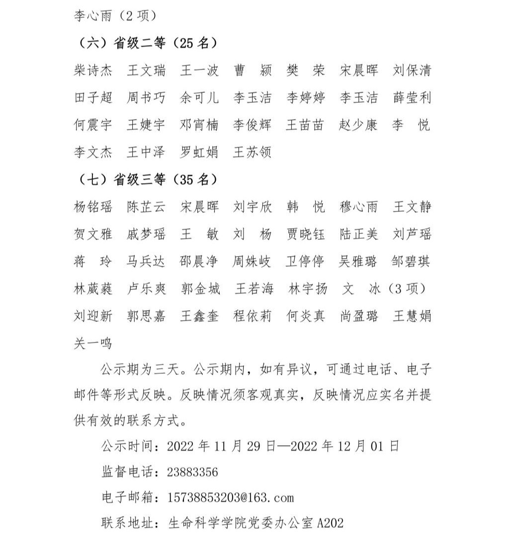 生命科学学院2021-2022学年本科生评先奖优拟获奖名单公示