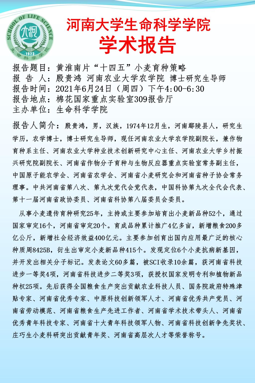 学术报告预告——BAES:河南农业大学农学院殷贵鸿