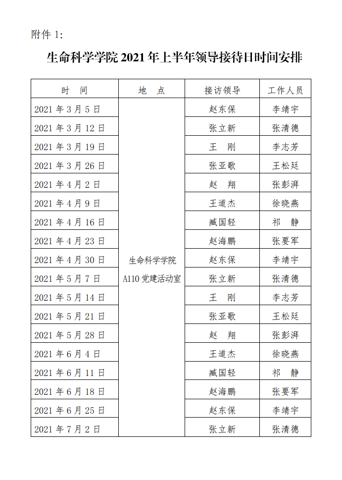 附件1.2021年上半年院领导接待日安排表