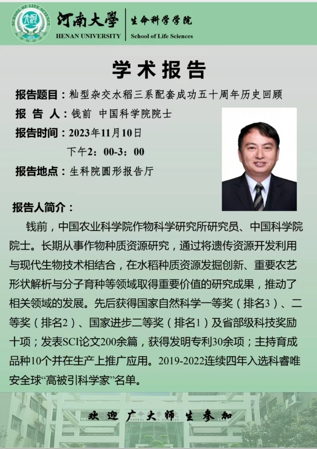 钱前(中国科学院院士):籼型杂交水稻三系配套成功五十周年历史回顾
