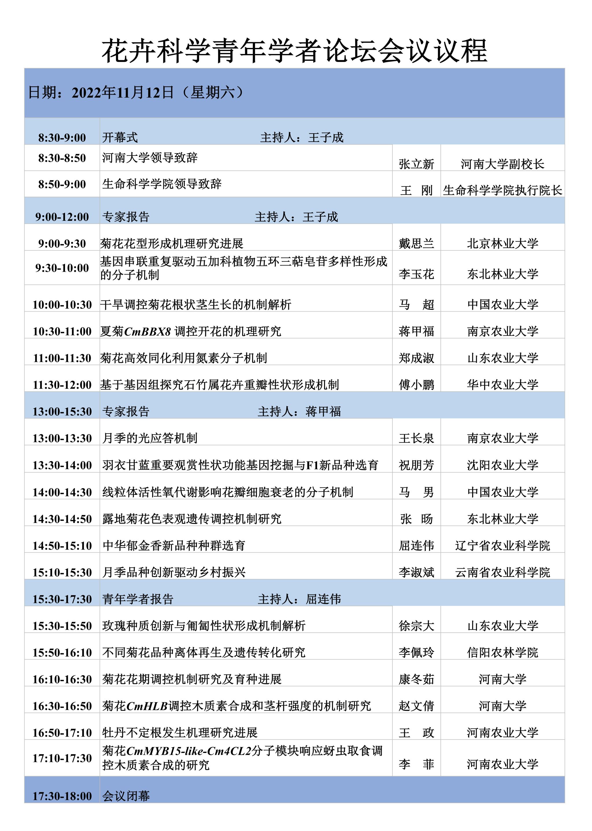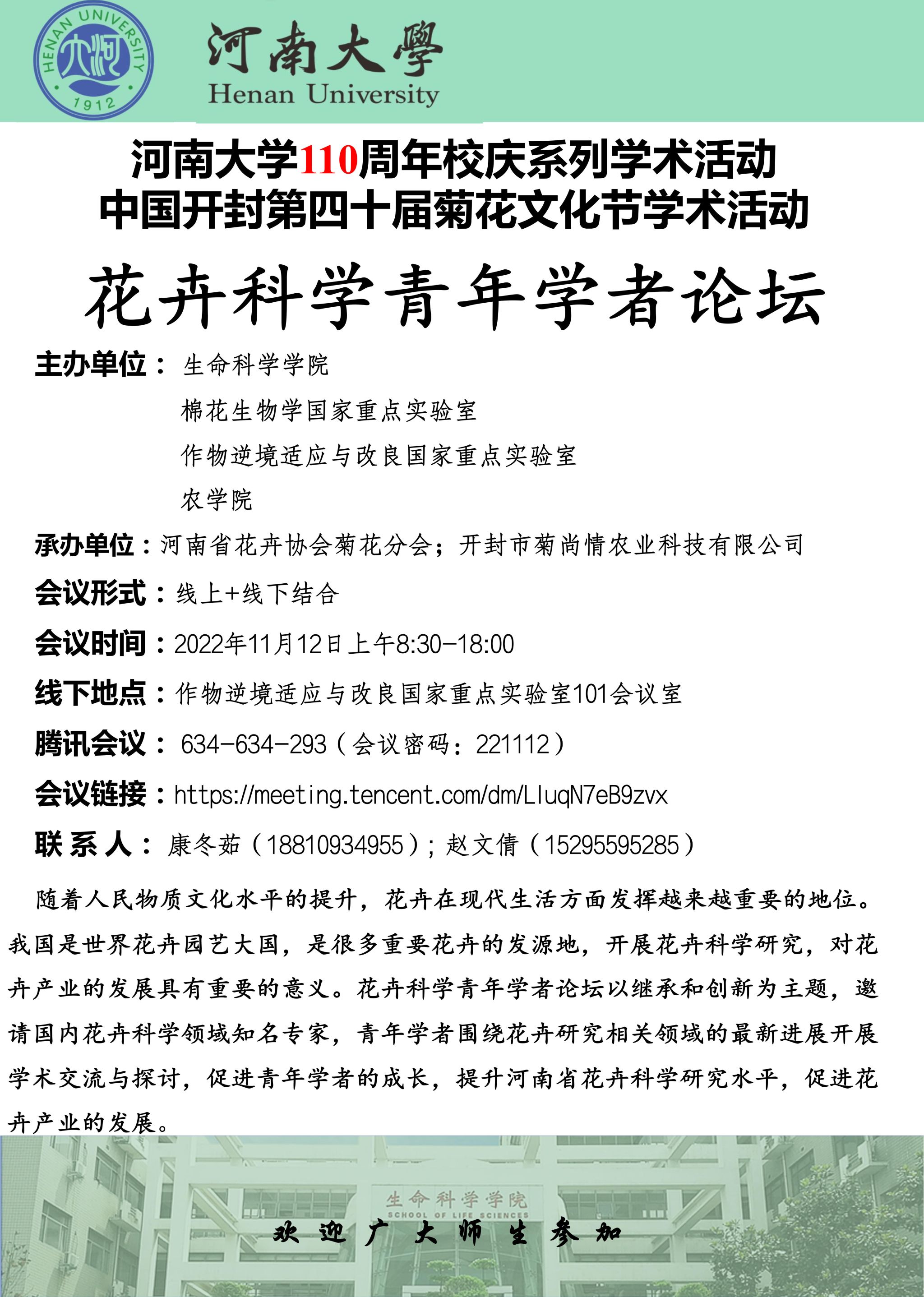 河南大学110周年校庆系列学术活动;中国开封第四十届菊花文化节学术活动;花卉科学青年学者论坛