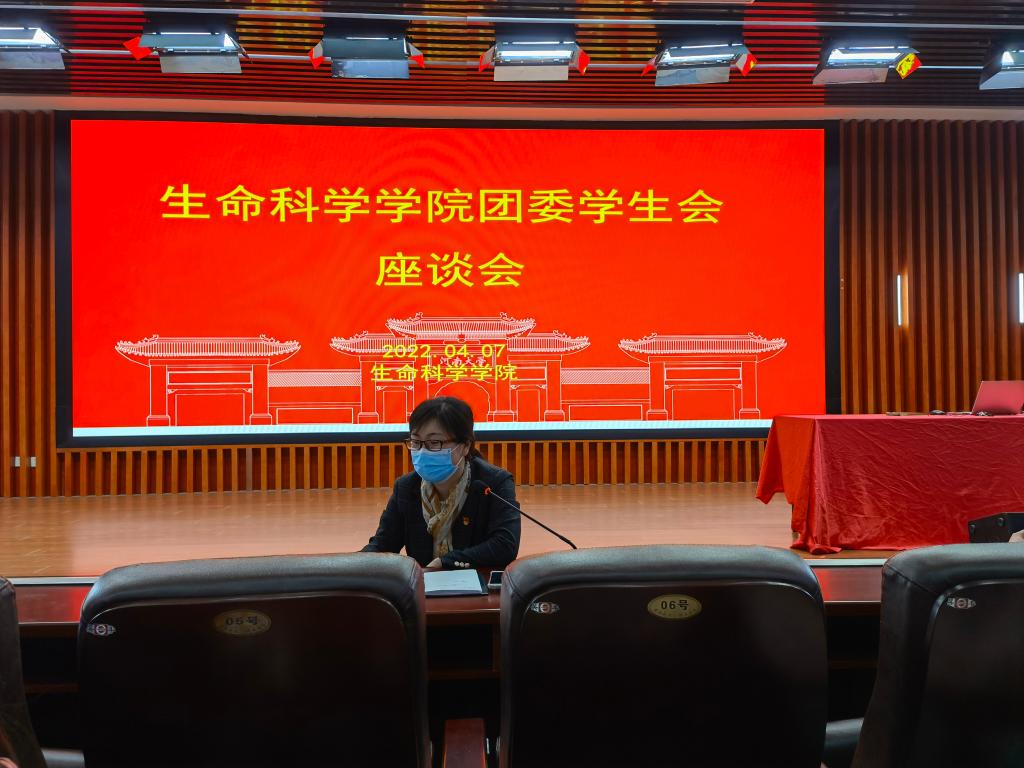 4月7日中午,生命科学学院在学院圆形报告厅召开了团委学生会工作座谈会。学院党委副书记程亚敏、团委负责老师张丽和学生会部分代表人员参会。